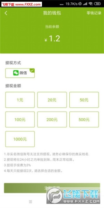 支持微信提现,首次1元提现,后续20元起提,24小时内到账。