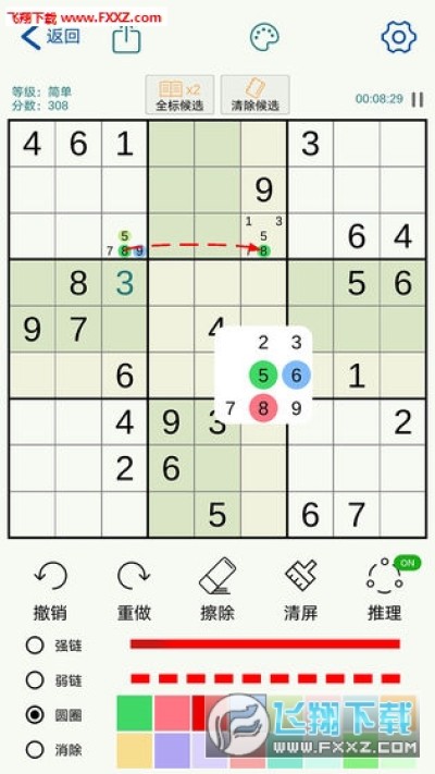 提供一键候选数功能,让你从填充候选数的枯燥中解放,集中精力于逻辑推理。