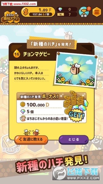 来吧蜜蜂Bee中文版是一款G.Gear最新制作的放置合成玩法的手游,游戏里玩家需要模拟养蜜蜂,让蜜蜂收集蜂蜜,不断升级机器获取更高的采蜜速度,融合相同的蜜蜂来获取更新的蜜蜂,清新的卡通画风小伙伴们不要错过!