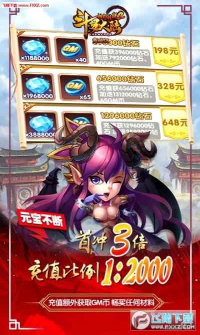 ★充值比例:1:2000,首冲三倍,续充永久赠送50%。