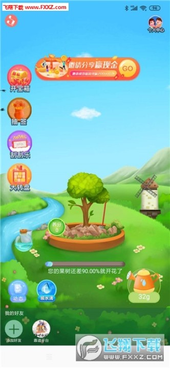 梦幻果园app是一个新上线的养成类赚钱游戏,不仅是玩法是很简单的浇水种树,而且是能种出真正的水果的,果实开花的时候,平台就会赠送水果,并且还是包邮的哦,同时也是可以玩游戏赚钱的,感兴趣就下载梦幻果园app吧。