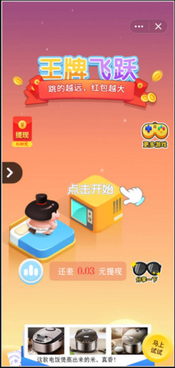 王牌飞跃赚钱手游是一款非常魔性的小清新风格的休闲益智类游戏。王牌飞跃游戏的游戏界面色彩特别的绚丽,而且王牌飞跃红包版玩法也很丰富,十分考验玩家的手速和反应速度!