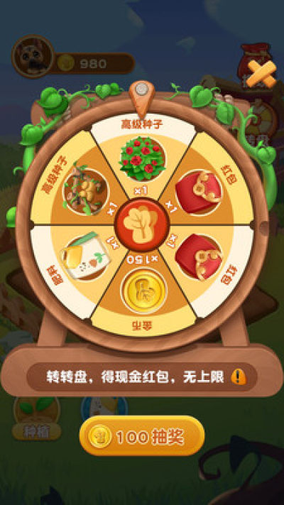 赚赚农场是一款通过种植作物,换取金币,使用金币转转盘获得奖励的游戏,转转盘不但可以获得高级种子,还可获得现金红包,提现秒到账!