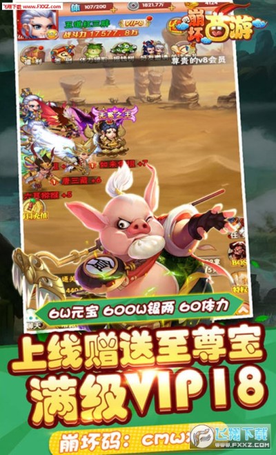 3、上线赠送VIP18和至尊宝,60000元宝, 600W银两,60体力,畅享西游梦