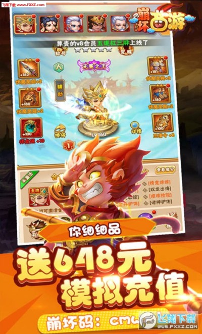 崩坏西游送648无限版是一款Q版风格的RPG手游,玩家可以收集西游的角色人物搭配阵容,上线就送648充值和满级vip特权,1元月卡直接飞升满级超v,无限体力银两尽情享受游戏所有内容,带给你体验真正的BT游戏乐趣!