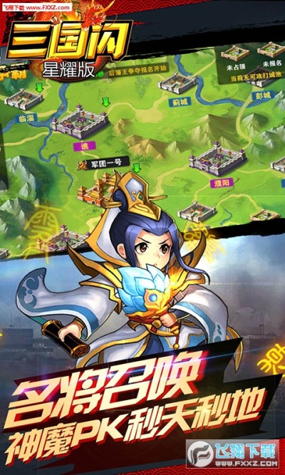 Q版的人物造型,萌态十足,更有红唇皓齿、一笑倾国的美人,为英雄增加属性,助竞技场耀武扬威!200多名传奇历史武将让你尽收帐下!