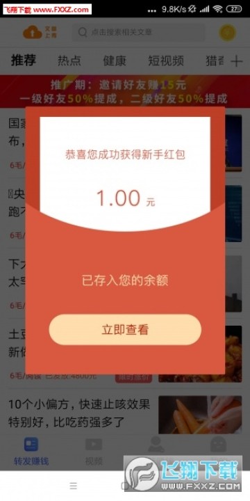 新人下载注册即送1元,转发单价3毛/阅读,更有限时涨价活动(6毛)