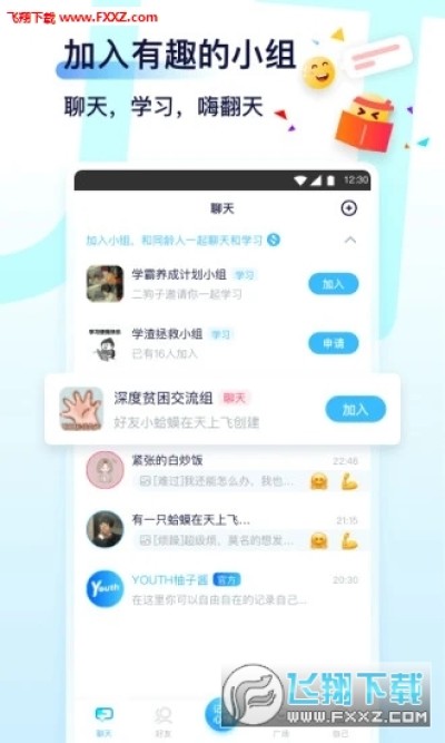 【加入小组】加入各种各样有趣的小组,大家一起聊天,学习,嗨翻天