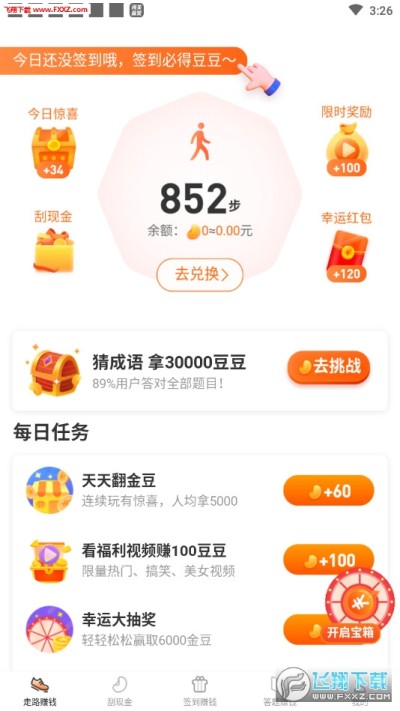 闯关赢奖福利赚钱app是一款通过闯关赚钱的游戏,大家可以通过走路、刮奖、答题来赚钱,赚钱的方式非常多,每天还会发布任务,完成任务就能获得豆豆奖励,豆豆可以兑换红包哦,感兴趣的朋友快来下载吧。