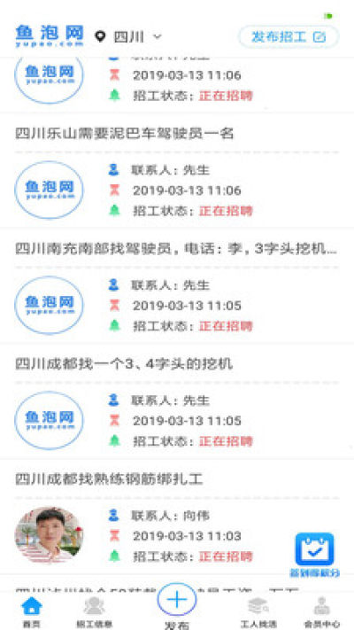 鱼泡网app是一款针对建筑、装修行业打造的手机招聘类平台,这款软件可以为用户提供找工作、招人的服务,在鱼泡网app上提供超多的岗位,还有各种行业信息等等!