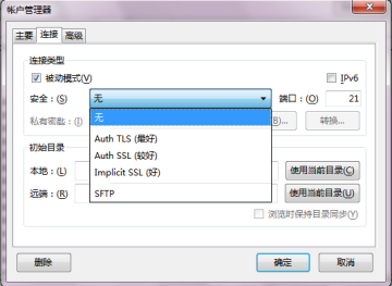 3.fireftp支持ftp服务加密传输哦(包括sftp),链接支持加密的ftp服务器时只需在服务器账号编辑页面的链接选项卡中选择对应的安全措施即可。