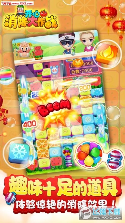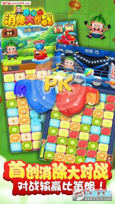 《开心消除大作战》是一款以水果为题材的点消合成对战与目标挑战闯关游戏。在游戏中通过不断挑战各种目标来获得各种奖励,在获得奖励后可以购买更多道具让下次挑战变得更容易,由此形成了一个良性循环。还可以通过不断升级水果店来拉伸营业额,降低游戏难度,大大增加了游戏的趣味性和挑战性。
