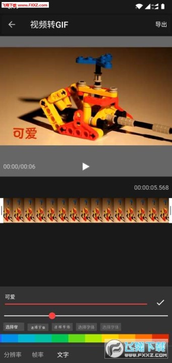 视频转GIF: 视频截取,添加文字水印。(字体需要自行下载放到 sd卡/JJ/font 目录下)