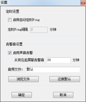 定时设置:设置循环Ping待监测设备的时间间隔,默认2分钟;启用了定时功能后,每次软件启动后会自动启动检测功能。