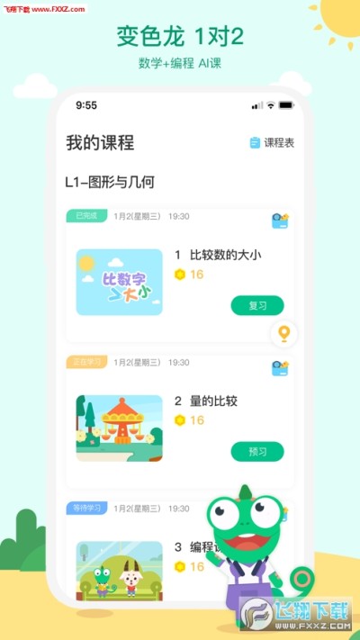 变色龙AI课堂app是一款给小朋友打造的手机学习平台,这款软件可以为用户提供关于编程的基础学习,还有数学思维训练等等,在变色龙AI课堂app上还有非常多样的真人教学服务版块,快来试试吧!
