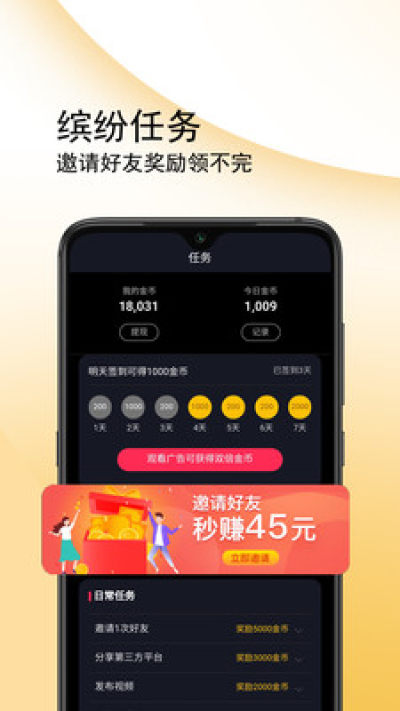 看视频得金币,邀新人得奖励,一个能刷出惊喜的宝藏APP。