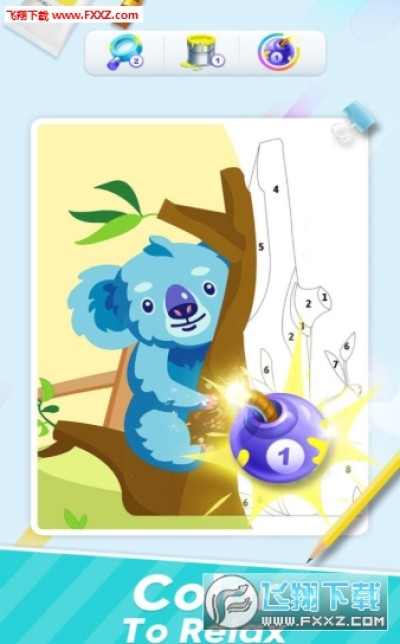 2.很多好玩的一些图片,我们需要通过闯关填色来获取金币;