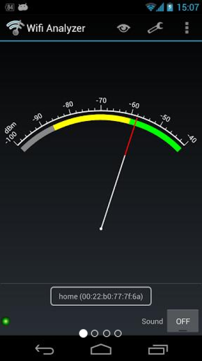视图中有五种信号查看模式分别是:信道图表,信道评级,接入点列表和仪表。每个都做的非常有趣。信号强度表以线状图的形式直观的反应出当前信号的强度。信道评级中可以选择你的当前在用的路由,然后查看该路由的各个信道级别。接入点列表可以看到当前您手机能搜索到的全部无线接入点,并很直观的看到信号的强弱度,还有其他的一些网络信息,看起来十分专业。点击接入点就可马上连接上。最后一个仪表非常有趣,像个电流表一样,选择好接入点以后,它会显示出信号强度,指针越靠近右边,说明信号越好,而且,还有提示音,你距离该路由越近,滴滴声的频率也就越快,有点像是在扫雷一样,没事拿着手机到处找wifi信号,用它进行探测,有趣极了。
