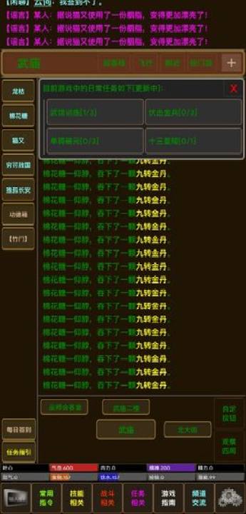 3、一分钱都不用花,武馆训练,坐骑装备,挂机即可,轻松放置战胜前来袭击的金兵,盖世大侠就是你们,大还丹九转金丹恢复你的体力。