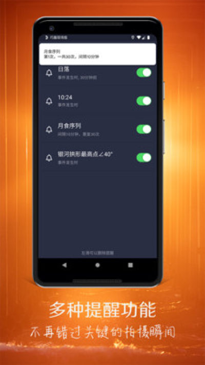 现场版的用户不仅仅是专业摄影师。任何有相机的人,包括手机相机,都可以使用这个应用。事实上,哪怕你不摄影,就是想目睹好光带来的美景,你都可以使用这个应用。在设计现场版的时候,我们为现场版定义的使用场景就只有一个:摄影师在拍摄现场需要某个数据,拿出手机,打开巧摄现场版,看一眼就得到需要的信息,然后就关上手机。整个过程就只有几秒钟。大部分情况下可能都不需要按任何一个按钮就可以看到需要的数据。甚至有智能手表的用户都不需要打开手机。这是因为我们还包括了提醒功能。你可以根据自己的拍摄风格,设定某些星历事件的提醒。到时候它就会自动提醒你某个事件到了。如果你戴着苹果或者安卓手表,手表上面可以收到这些提醒。 那么巧摄现场版提供了哪些有用的数据呢? 白天摄影:日出日落的时间、蓝调时间、黄金时段、月出月落的时间。 夜空摄影:黑夜开始和结束时间,银河中心在天空的位置和时间,波特尔暗空指数。 指南针:太阳、月亮、银河中心在一天不同时间的方向。 提醒功能:星历事件提醒,固定时间提醒,间隔重复提醒。 当然,这才是开始。如果你是巧摄专业版用户,你应该记得在过去的这几年里,我们在专业版功能里面增加了多少功能。现场版也会一样。将来我们还会增加更多的现场需要的功能,比如增强现实、踩点记录、以及天气有关的服务。为了感谢大家近年来的支持,现场版目前是免费下载使用。