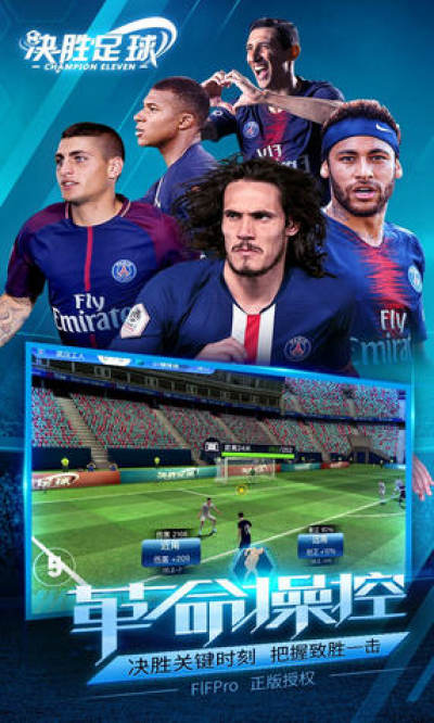《决胜足球》是一款由FIFPro正版授权的3D策略足球手游,著名球星李毅大帝和足球先生范志毅授权并倾情代言。 游戏通过球员真人动作捕捉与新一代3D模型制作,带给玩家真实的赛场体验。玩家既能在球场扮演巨星,展现决胜瞬间;亦可扮演球队主教练,招募球员、排兵布阵。 在这里你可以和李毅大帝、范大将军一起冲击冠军联赛,体验职业球星都喜欢玩的足球手游!