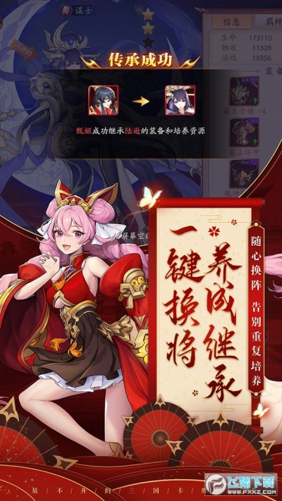 无需担心重复培养武将的问题,点击“换将”即可将目标武将更换上阵,同时继承被更换武将的装备、进阶、等级等养成资源,轻松搭配出多种作战流派阵容以应对不同敌人。
