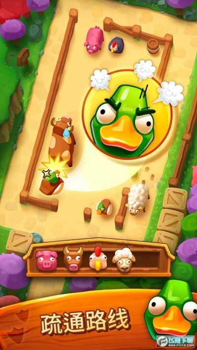 所有的动物都站在栅栏上的洞口,你应该按照正确的顺序把它们送到正确的逃生区。当然,途中会有不同的障碍:灌木、木桶、栅栏。你也应该改变你的策略来应对它!注意障碍物。电栅栏、手推车和老弗雷德都在通往动物自由的路上。行动前请三思。