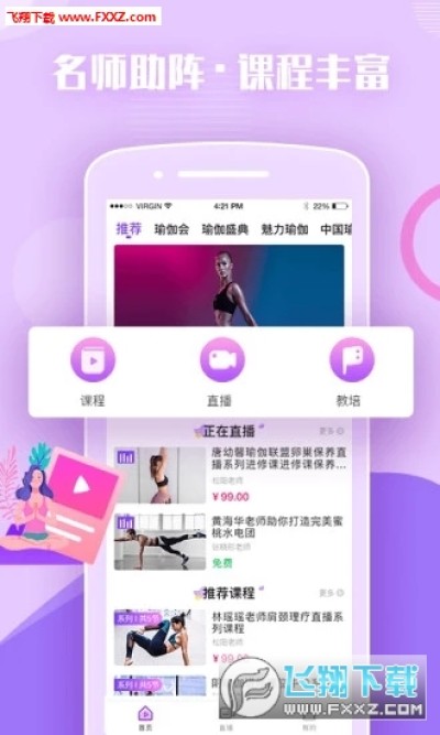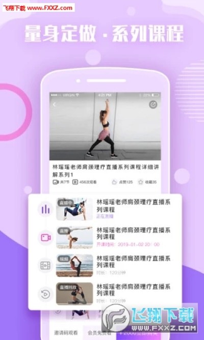 -[精品瑜伽课]通过视频或直播形式教学,标准动作讲解,重复学习,让新手轻松学习;
