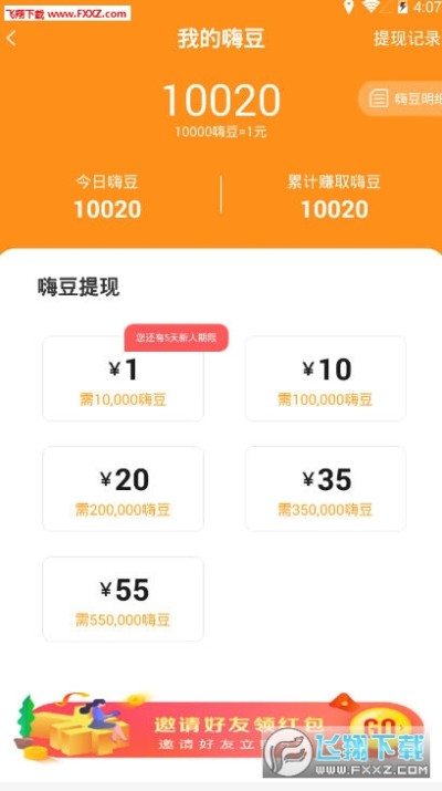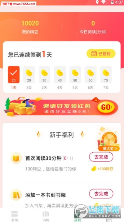 嗨读小说app上线就送新人红包,当日就可以提现,不仅为读友们提供免费的小说平台,而且看小说的同时也是在赚钱,休息之余做做日常任务还可以赚取更多的嗨豆,嗨豆可以兑现哦,喜欢看小说,千万不要错过嗨读小说app。