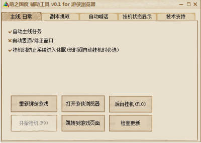 萌之国度辅助工具是一款功能强大专门用于页游萌之国度的辅助插件,该辅助工具完全模拟按键操作,为玩家节省大量的游戏时间和精力。