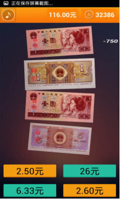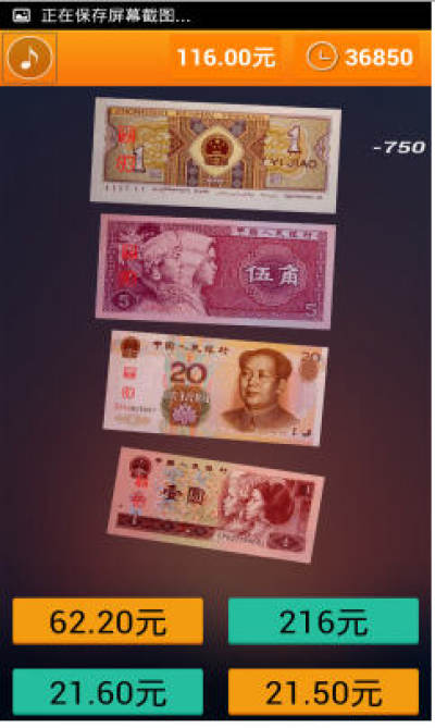 4、界面上方显示上方为时间,通过自己的能力来数更多的钱吧!!