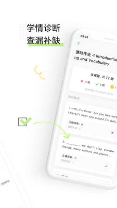 学情诊断,查漏补缺。还原真实作业场景,提高错题回顾、复习效率;