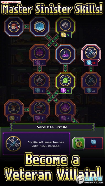 一款像素风格的模拟经营类手游,游戏里玩家需要扮演一名发明家,创造各种武器布置机关陷阱来破坏,三种不同的坏人角色可以自由的选择,雇佣坏蛋小子壮大自己的帝国,小伙伴们快来下载试试吧!