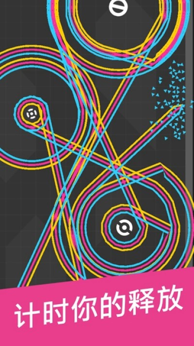 玩家需要利用场景当中的节点,通过不断的切换连接的节点向上移动,如果接触到节点则游戏失败。随着游戏的进行,玩家经过的地方会留下一条美丽的线,绕着节点弯弯曲曲的,宛如一件漂亮的艺术品。