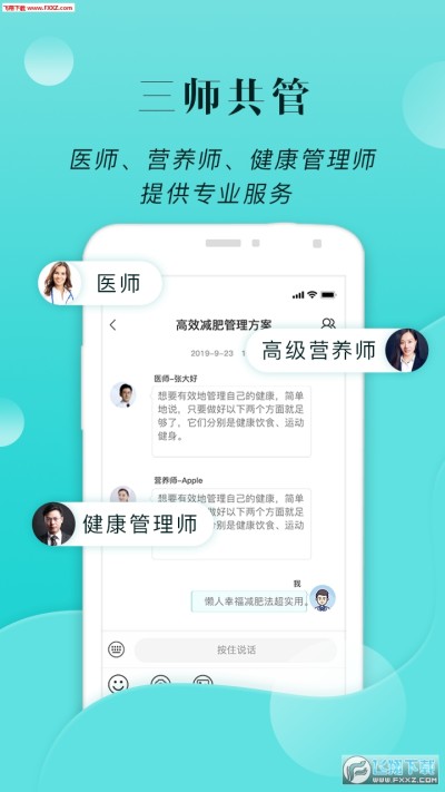 医师、营养师、健康管理师根据体重、卡路里管理身体健康。