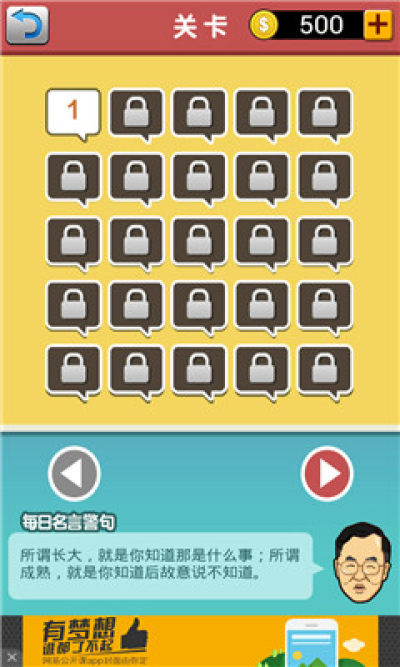 天天猜名言是一款答题类的益智游戏,如果你曾经玩过火爆一时的疯狂猜图,那么这款游戏可以马上上手。经典的话你在生活中一定都听过,出自哪里知道吗?又到了考验你的时候,你能过几关呢?快来试试吧!