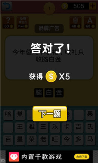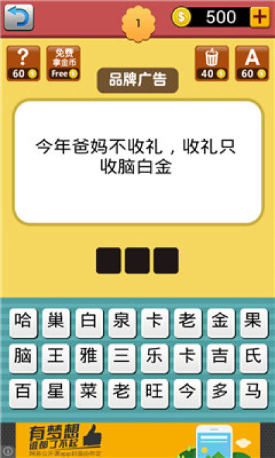 玩家需要根据图中的画面提示在下方的字中找出正确答案并且填入框中。