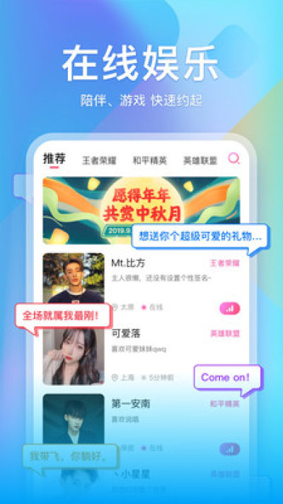 小鲸鱼语音app是一款为各位年轻人打造的手机社交平台,这款软件上可以支持语音服务,在线语聊,同时还能在小鲸鱼语音app上找各种人陪你打游戏开黑哦,快来下载试试吧!
