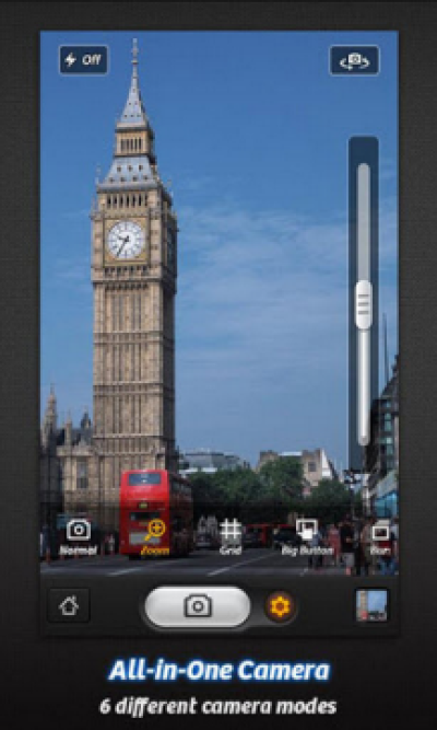- 六种不同的拍摄模式,同时具有网格,触屏拍照,连拍,定时拍摄,防抖,和广角功能。
