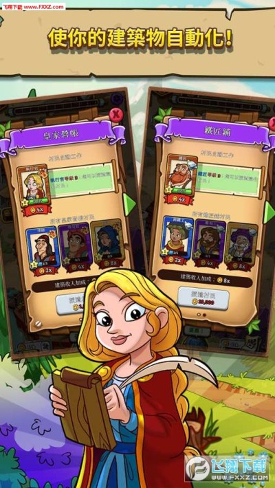 《放置皇室中世纪任务安卓版》是一款经营模拟类的游戏,游戏中玩家来经营你的王国,不断扩大你的产业规模,简单的控制操作,探索未知的领域,搜集资源,展开全新的旅程,游戏自带中文放心游玩,赶快下载体验吧!