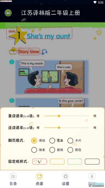 【2】点读、全文朗读,区间复读,语速灵活控制,多种功能满足孩子的学习需求。