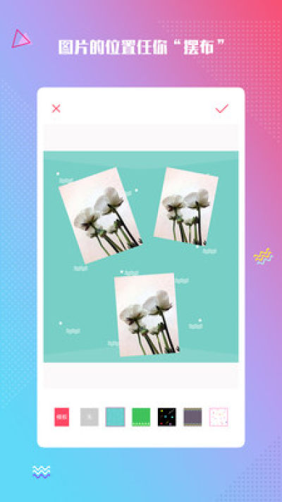- 拼接长宽比可自定,多种图片相框与多彩背景自定义