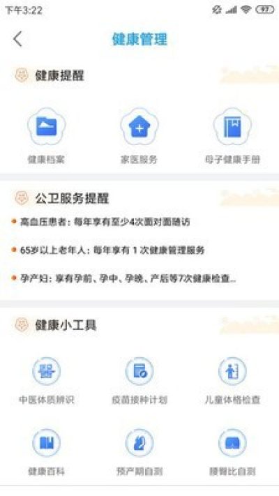 3.中医体质辨识,在这里享受疫苗播种计划以及儿童体格检查等,感受健康百科以及预产期自测等,还有丰富其他有用的工具。