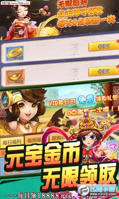 元宝、金币无限送:永久每日签到即送18888元宝、1000万金币