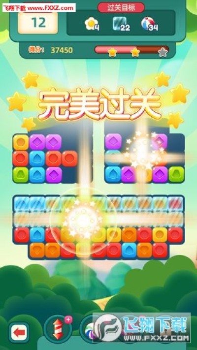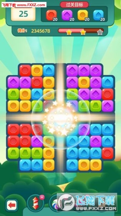 玩家在游戏过程中,可以通过点击屏幕中连续相同的砖块来消除砖块,消除砖块就会得分,达到关卡的目标分数后即可过关。