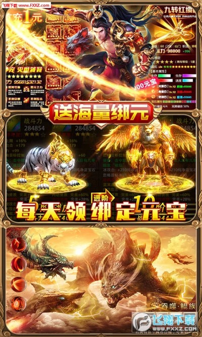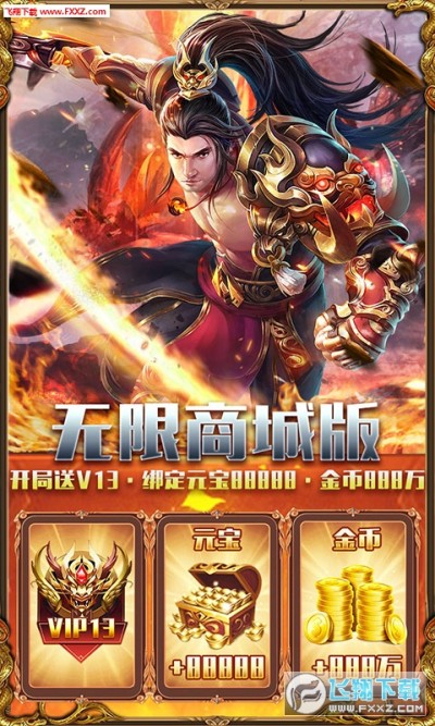 ★创角送:满级VIP13、绑定元宝*88888、金币*888万!