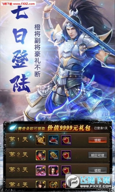 4.连续登录2天上线即送红将赵云,登陆7天四神将任选其一!