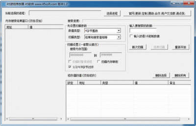 45游戏修改器是一款功能强大非常好用的游戏修改工具,支持修改字节整理、字节数组、字节双浮点数等应用相关参数,使用45游戏修改器搜索修改数据速度快,效率高,是游戏、软件数据修改好帮手。