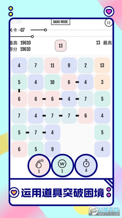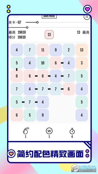 1、屏幕空白的地方会随机出现一个数字方块,当所有方块相撞时可以相加。