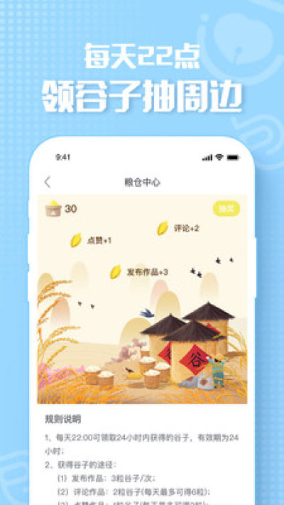 发布作品、互动还可以获得谷子奖励哦,谷子可用于周边抽奖。只要勤快攒谷子,任性十连抽总能轮到你欧一把O(∩_∩)O~~